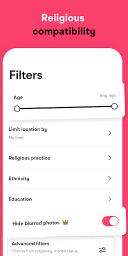 🔍 Bộ lọc theo mục tiêu: Tìm kiếm đối tượng phù hợp hoàn hảo theo Vị trí, Sở thích, Nghề nghiệp, Dân tộc, Ngôn ngữ, Học vấn và nhiều hơn nữa. Khám phá các nền văn hóa khác, trò chuyện với người Ả Rập, Nam Á, người Hồi giáo Châu Âu và nhiều hơn nữa.